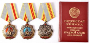 P.S. А вот несколько иная местная история про госнаграды, участника которой мне искренне жаль. Пару лет назад встретился с этим ветераном ВНИИЭФ по краеведческим делам. В советское время он был награждён орденами Трудовой Славы 3-и 2-й степеней. Но, оказывается, его тогда представили и к награждению орденом Трудовой Славы 1-й степени (на фото из интернета — с красной эмалью). Причём, не просто представили, а и отослали наградные документы в Москву. Но, к его несчастью, это был 1991 год. Союз распался, советская наградная система канула в лету и его наградные документы видимо просто не успели подписать. (А вот некой Пугачёвой Горбачёв успел дать звание Народной артистки СССР по Указу от 21 декабря 1991 года!) Представляете, у нас в городе мог быть полный кавалер орденов Трудовой Славы! А таковых во всей стране было меньше тысячи, т.е. в 20 раз меньше, чем Героев Соцтруда. К которым, кстати, они приравнивались не только по льготам, но по воздаваемым почестям.
