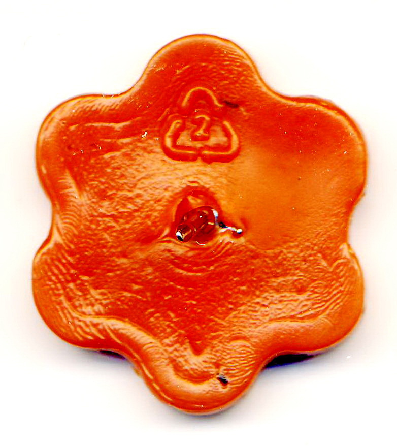 Прямоугольник с круглым выступом в левом верхнем углу 20х42мм. Алюминий. Красная, оранжевая эмаль. Булавка.