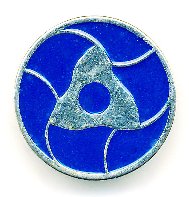 Форма герба 16х22мм. Жёлтый металл. Синяя и красная эмаль. Цанга.