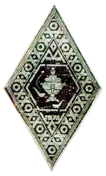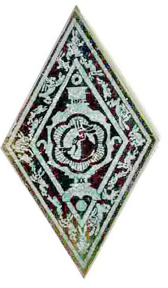 Щит 15х18мм. Жёлтый металл. Красная, голубая и белая эмаль. Винт.