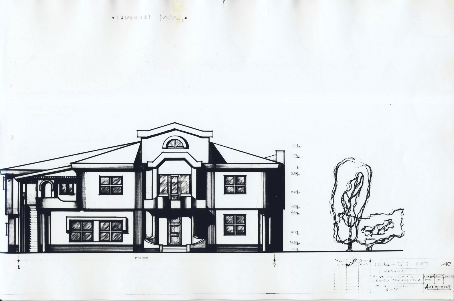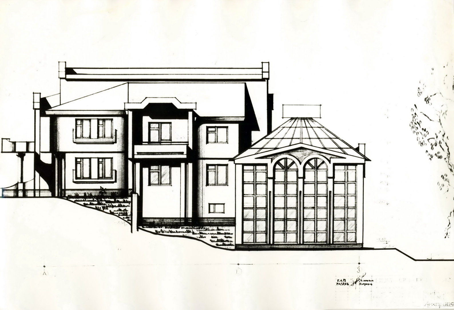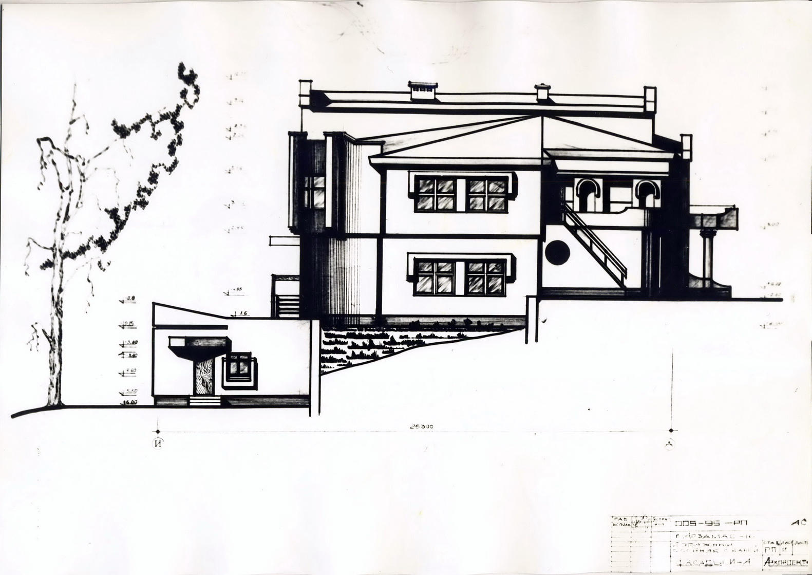 Продолжим просмотр папки с фотографиями проектов архитектора Г.И.Ястребова, переданных автору его сыном Д.Г.Ястребовым. В которой представлены как широко известные в Сарове, так и неосуществлённые проекты. На этот раз о проекте, осуществлённом наполовину (и то, временно) – «2-х эт. особняк с офисом (баня, бассейн, оранжерея, подвал)» на р.Сатис. Я бы даже сказал вилла – основание примерно 20х21м, т.е. общая площадь двух этажей с подвалом более 1000м²!
