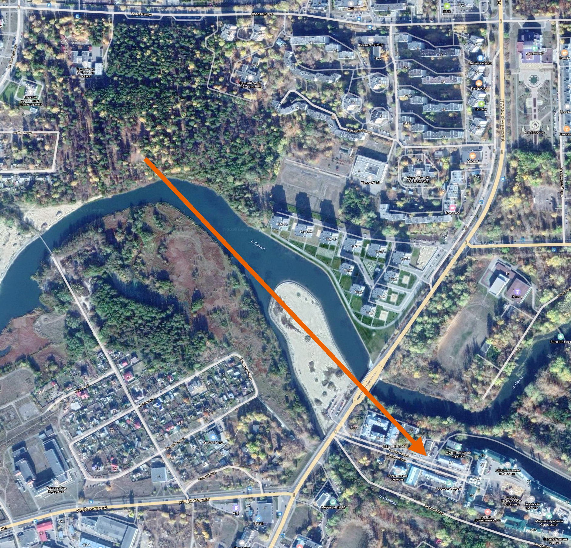 Многие видели этот недострой в конце 1990-х годов и гадали, кто же счастливый заказчик этого будущего роскошества на высоком берегу Сатиса – ну явно не «часовые Родины»! Даже по меркам нынешнего времени он мог бы выглядеть очень солидно, а уж по тем временам и подавно. И дело не только в размерах и интересной архитектуре строения, но и в уникальном местоположении. Рядом с улицей Советской за д/с №1 «Лесная сказка», практически в географическом центре города, но в то же время в перелеске (экология!) на высоком берегу излучины реки Сатис, с которого вдоль русла реки открывается прекрасный «открыточный» вид на архитектурный ансамбль Саровского монастыря. Странно было, как это уютное местечко до сих пор не «освоили» предприимчивые толстосумы, готовые заплатить только за участок миллионов 10-20 (по моей дилетантской оценке). Впрочем, видимо скоро этот «открыточный» вид будет изрядно подпорчен современными архитектурными изысками, возводимыми современными ещё более предприимчивыми бизнесменами на стрелке рек Сатиса и Саровки – см. «космическую» карту Гугл, на которой хорошо видна проплешина в перелеске на месте строительства особняка и вид от неё на монастырский комплекс.