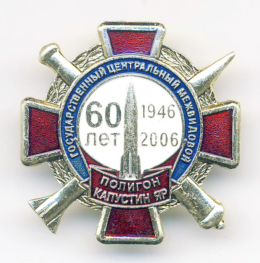 Ромб 36х42мм, обрамлённый лучами «сияния» сверху и лавровой ветвью снизу, на колодке 23х15мм с красной эмалью. Анодированный алюминий. Булавка. Клеймо ММД.