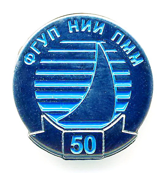 Щит 34х45мм с накладной эмблемой РЭА. Накладной щит из белого металла на жёлтом металле. Синяя горячая эмаль. 2 цанги.